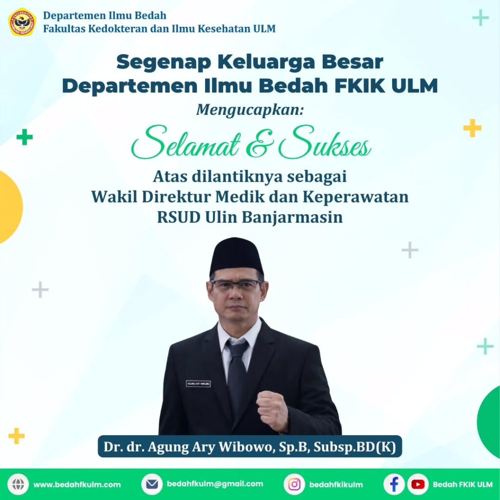 Selamat & Sukses kepada Dr. dr. Agung Ary Wibowo, Sp.B, Subsp.BD(K) atas dilantiknya sebagai Wakil Direktur Medik dan Keperawatan RSUD Ulin Banjarmasin